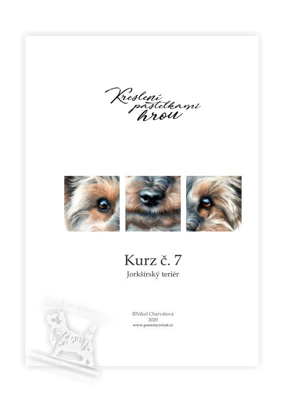 V sedmém díle výukového sešitu "Kreslení pastelkami hrou" si podrobně rozebereme kresbu jorkšírského teriéra. Je to zatím nejnáročnější kresba, kterou si v sešitě vyzkoušíme. Ale jelikož chci zvyšovat vaši laťku a posouvat vás dál, tento sešit je tu právě pro vás. U jorkšíra je téma jasné - dlouhá, stříhaná, někde hladká, jinde rozčepýřená srst. Různě přes sebe se překrývající se prameny.. Jak toho docílit, tak na to dostanete odpovědi v tomto podrobném díle. Nechybí ani použití několika nových odstínů pastelek Derwent Lightfast a Caran d’Ache Pablo. Řekneme si, jak ideálně tónovat jorkšíří zlatou srst a především si dokola a dokola vysvětlovat, jak kreslit jednotlivé prameny a jejich špičky, čeho si všímat, na co si dát pozor, co si zjednodušit, abychom se z kresby nezbláznili a jak zachytit to nejdůležitější. Všechno se dozvíte právě zde.